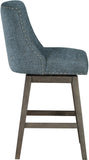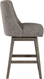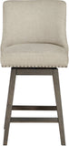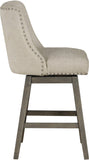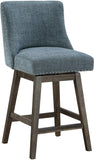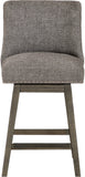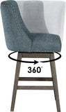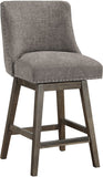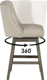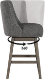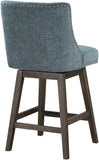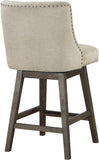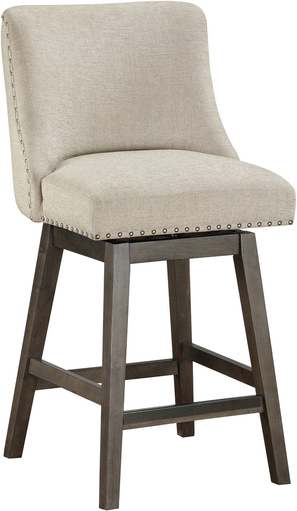 Enjoy the comfort and beauty of a modern, contemporary design with this counter stool. It's perfect for a kitchen island or any casual eating area that's counter-height. The padded back and seat are well-positioned and detailed with tailored nailhead trim, making it an essential solution for active seating. With full swivel motion, you can easily converse and eat with ease. The stool is made with 100% polyester fabric, which is dependable, and the solid wood frame ensures durability and beauty. Assembly is required.