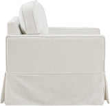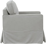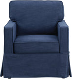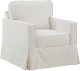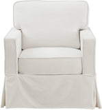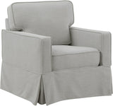 Introducing our faux slipcover-look armchair, the perfect addition for creating a charming and relaxed cottage home. The classic track arm, tailored piping, and flirty kick pleat give this armchair a casual yet stylish look that will enhance any well-designed home. Whether you want to decorate your living room with a single armchair or create a cozy reading nook in your family room with a pair, our armchair will add a classic feel that invites you to sit and relax. The deep box cushions are made of high-resiliency foam, wrapped in thick poly-fiber, and supported by sinuous springs for long-lasting good looks. In addition, the solid wood legs, corner block construction, and easy tool-less assembly ensure the highest quality and integrity of this thoughtfully designed chair.
