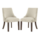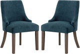 Looking to add some warmth to your home? Try our upholstered dining chairs, sold in a convenient 2-pack. These chairs are perfect for farmhouse or cottage style dining rooms, and can be used to elevate any kitchen or family table. They can also add charm to a guest room or home office. With a foam-padded back and sinuous spring seat, you'll be sure to find comfort as you sit. The chairs come in a range of beautiful fabric colors to choose from, adding a touch of sophistication to your space. The legs are made of solid wood with a charming gray wash finish. Assembly is simple, and the pair will be ready to use in no time.