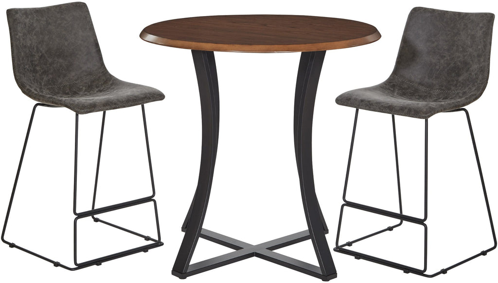 Create a fresh modern dining room, kitchen, or breakfast nook with our Mid-Century Modern round counter height table with a metal cross-frame base in a matte black finish. Make your décor uniquely your own; this table's modern, contemporary style pairs effortlessly with two counter-height stools included in faux leather with a metal base in matte black. Our pub-style table and stool ensemble are beautifully durable and easy to assemble.