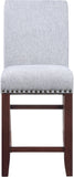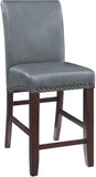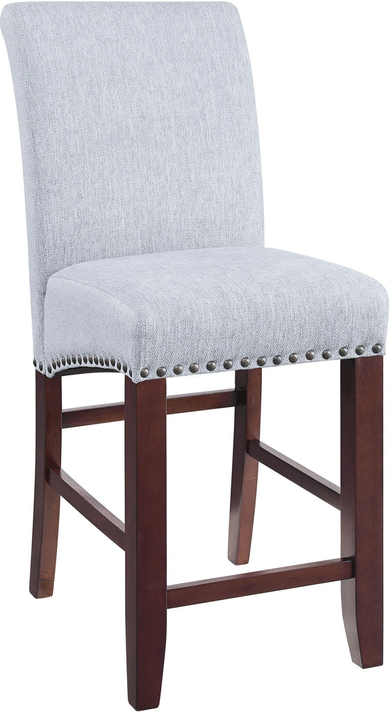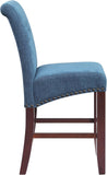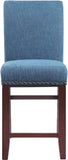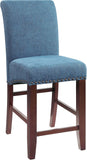 The Parsons 24" dining stool is perfect for kitchen island and countertop dining. It features a tall, elegant padded back, a padded seat, and a footrest for exceptional comfort. The classic style is enhanced by a gently scrolled shoulder, antique bronze nail-head trim, and sleek profile. Made from solid wood legs, it ensures quality and durability. You can choose from supple faux leather or 100% polyester fabric, both of which are easy to clean. The stool is simple to assemble.