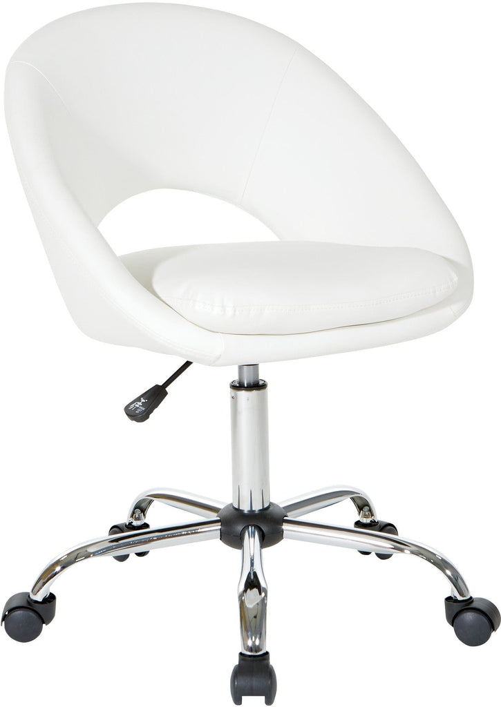 Looking for a stylish and comfortable office chair for your home office? Look no further than the Milo office chair by OSP Home Furnishings! With its modern and sleek design, generous padding, and a scoop seat, it's perfect for all-day tasking. The durable chrome base, pneumatic height adjustment, and dual carpet casters make it a practical choice as well. Whether you're replacing an old chair or simply upgrading to a more professional look, the Milo office chair is sure to add a touch of elegance to your workspace.