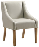 Enhance your dining room with our elegant upholstered dining chair. Its fully padded design ensures hours of comfort, while the solid wood legs in a natural oak provide both durability and stylish appeal. This chair is an ideal complement to any dining table and can also serve well as a writing desk chair. Assembly is simple, just bolt in the legs.