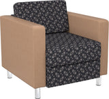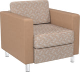 The Pacific Armchair from Avenue Six guarantees subtle grace and affordable comforts. This club-style chair is designed with a contemporary edge in high-performance, easy-care vinyl. Equipped with a durable box spring seat that ensures your relaxation is well protected. All are outfitted with silver leg finishes that prop this chair and give it a chic display. This club chair's crisp, modern architecture will impress guests and decorate your home with refined taste.