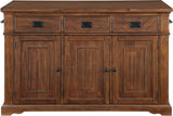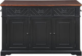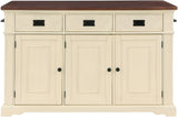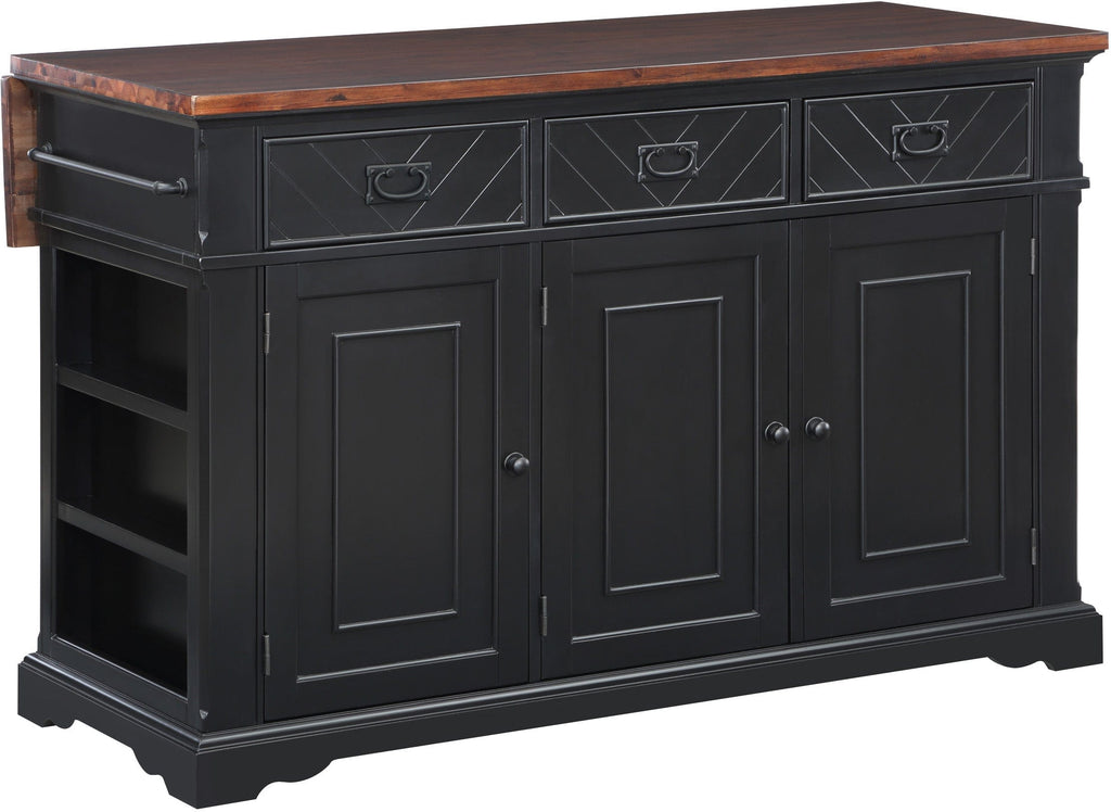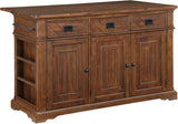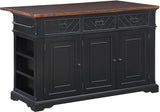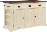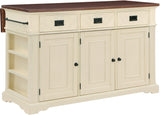 Add the warmth and charm of farmhouse style to your home with our kitchen island. Utensils are easily reachable with our 3-drawer design. Keep large pots, bowls, or countertop appliances tidy and out of sight in our spacious three-door cabinet with two adjustable shelves. Keep cookie sheets and cutting boards arranged and organized with conveniently divided vertical storage shelves. Small spices can be displayed and handy with the flanking exterior spice racks just below a well-positioned towel bar. Made of solid wood and veneers and finished in an 8-step painted finish for long-lasting durability. Ships in three cartons and assembly is required.