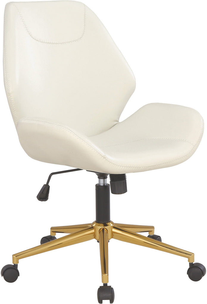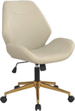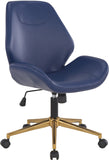The Reseda office chair is a stylish and contemporary addition to any workspace. Featuring a scooped, padded seat with integrated lumbar support, it offers both comfort and beauty. The chair comes with pneumatic height adjustment, adjustable tilt tension, and 360º rotation, allowing for personalized posture while working. The elegant 5-star gold-colored base and heavy-duty dual carpet casters make it easy to move around on different types of flooring. With this chair, you can add a touch of panache to your office while enjoying exceptional functionality that makes your workday more comfortable and productive.