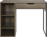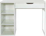 This practical Ravel desk features clean contemporary lines, a large 47.5” desktop, ample open storage, and a handy accessory drawer, making it a perfect addition to any home.
