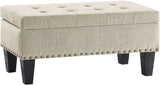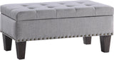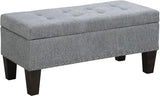 Introducing our charming Clement storage bench that can add both storage and beauty to any room. With ample space thoughtfully lined inside, you can safely store blankets, pillows, games and books. You can also use it as an ottoman to relax by pairing it perfectly in front of a couch or sofa sectional. It can also be used in an entryway as a place to kick off your shoes and stow away your backpacks and shopping bags. The easy-to-open and soft-close hinges will provide you with years of use.