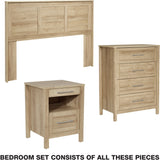- Bedroom set includes: Headboard, One Nightstand with USB power, 4-Drawer chest