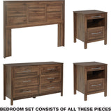 - Bedroom set includes: Headboard, Two Nightstands with USB power, 6-Drawer dresser