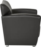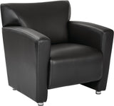 This club chair, upholstered with faux leather, is a perfect accent piece for your home with its bold design and smooth curves. The chair's base is anchored by simple Silver finish post legs, while the plush seat cushion and padded back provide the desired support. The piece features clean lines and a slightly bowed center back that makes it blend perfectly into a variety of home or office décor schemes ranging from contemporary to modern to transitional.