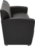 The faux leather upholstered Sofa boasts a bold design with its smooth curves. It is a must-have for your home, with simple Sliver-finished post legs anchoring the sofa's base. The plush seat cushion and padded back offer the ultimate support you will be dying to sink into. The Sofa features clean lines and a slightly bowed center back, making it perfect for a variety of home or office décor schemes, from contemporary to modern to transitional.