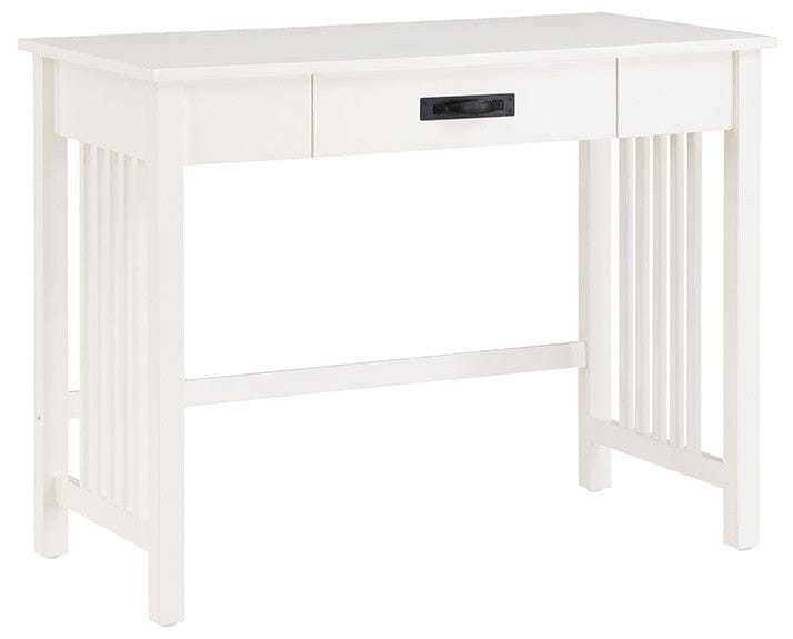 The OSP Designs Sierra Mission Writing Desk is the perfect addition to any sophisticated and exclusive home décor. With its solid and engineered wood construction, "Mission" style side panels, and pull-out drawer with a metal handle, this desk exudes elegance and functionality. Available in Ash or White finish, this desk complements transitional, urban, contemporary, or cosmopolitan styles. Make a statement with this affordable and easy to assemble writing desk. Intended for residential use only.