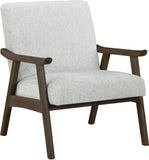 Enhance the aesthetics of your home with our stunning Mid-Century Modern Chairs. It is perfect as a pair, providing a sophisticated touch to any living room. Upgrade your guest room by incorporating this pleasing design element into your decor. The sturdy solid wood frame in a cantilever design is not only attractive but also provides reliable support. Additionally, the ample back and seat cushions ensure a comfortable seating experience. Assembly is required.