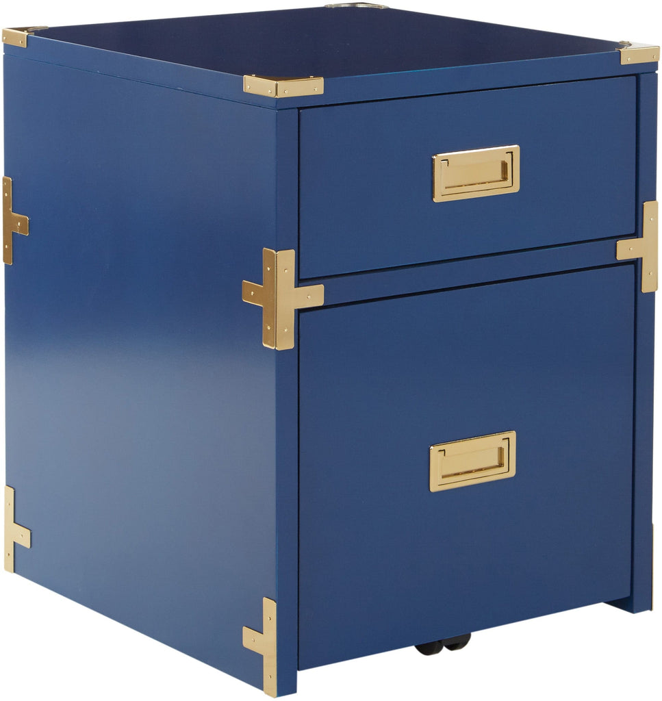 Ensure you keep all your essential documents in one place with the Wellington 2-drawer file cabinet. It boasts a campaign-style design with elegant metal hardware accents and classic detailing that adds to its timeless beauty. The file cabinet features a single drawer that accommodates both letter and legal size files, while the extra storage drawer provides ample space to keep your office supplies organized. Stay on top of your work and maintain a neat office with the Wellington 2-drawer file cabinet.