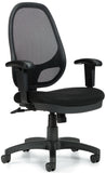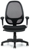 This mesh office chair from Office To Go features a soft screen mesh backrest for maximum support and ventilation. Other features include a thickly padded seat cushion upholstered in breathable mesh fabric, height adjustable arms with urethane pads, 360-degree swivel, pneumatic seat height adjustment, synchro-tilt chair control, tilt tension adjustment, single position tilt lock, and a heavy duty scuff resistant arched molded base with dual wheel carpet casters. This chair meets or exceeds ANSI/BIFMA standards.