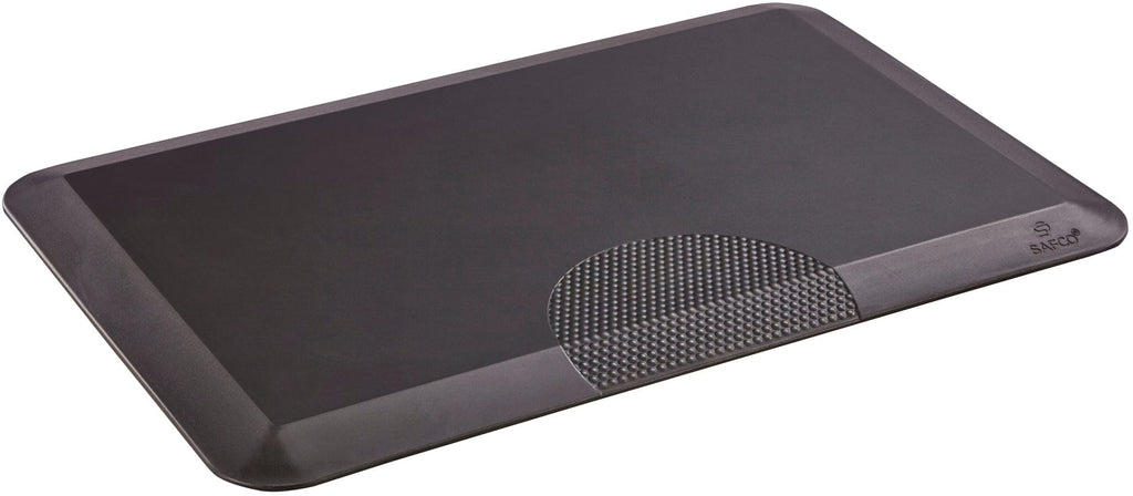 Looking for a comfortable solution to complement your standing-height workstation or sit-stand desk? Look no further than the Safco Anti-Fatigue Mat! This mat is designed to reduce pressure on your legs and feet, thanks to its cushioning support. Made from self-skinning polyurethane foam, the mat is one inch thick and is resistant to tears and punctures. Plus, it's easy to use - simply slide it under your workstation using your foot. The mat has glides on the bottom and a textured section on top, making it simple to stow and redeploy without bending down. Whether you have a Safco Scoot or Mood Series Standing-Height Desk or any other sit-stand desk or standing-height workstation, the Safco Anti-Fatigue Mat is an essential addition to keep you comfortable throughout the day.