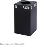 Keep your eco-friendly efforts neat and organized with the Safco Green Public Square Recycling Bin. Available with your choice of slot, round or square lids, this 25 gallon heavy-gauge steel receptacle ensures recyclables are kept neatly separated. For use in a home or office setting, this recycling bin comes with an optional lock kit.