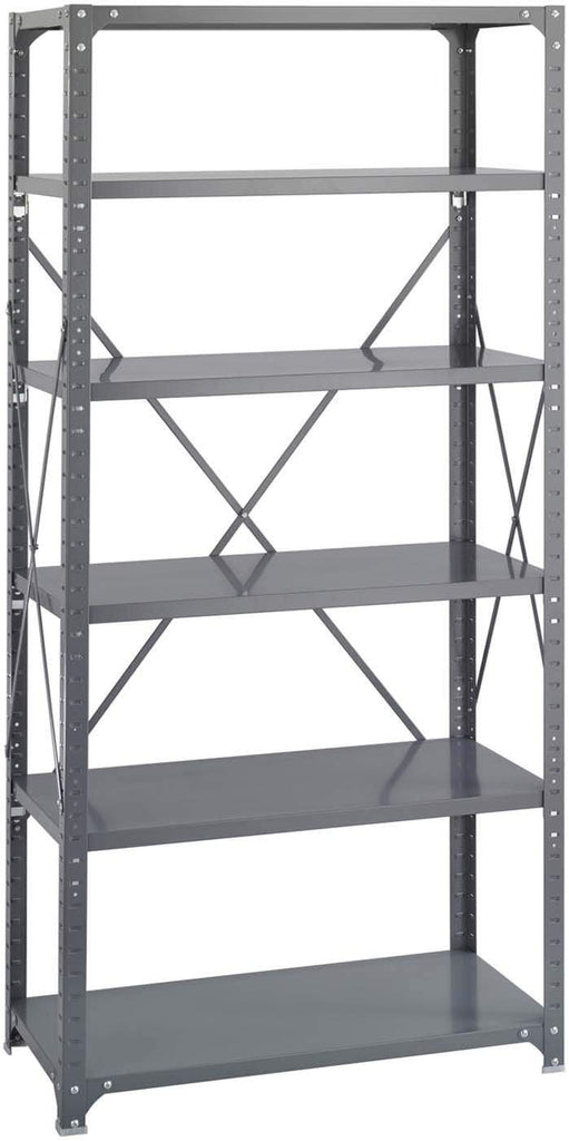 Store extra materials easily with the Safco Commercial 6 Shelf Unit, which has adjustable shelves that can hold 350 pounds each as long as they are evenly loaded. Featuring double sided compression clips, a box beam shelf design and a hat channel and corner brackets, this sturdy unit is a good addition to any storage room.