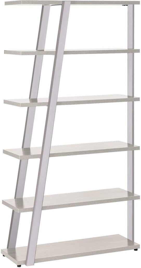 Mirella™ 5 Shelf Bookshelf features a contemporary design that provides a residential look, complemented with Brushed-Silver or Black Powder Coat accents and finishes. Comes complete with an open back and three-legged construction that sets its design apart from the rest of the office. Free-standing unit that can be used separately or as part of a matched Mirella™ Desking set. Built for sturdy storage with three 1” thick laminate shelves with levelers on the bottom of the unit. Also coordinates with Mirella™ Conference and Reception designs for a cohesive and professional look.