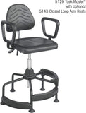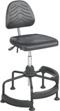 Difficult tasks don't stand a chance with the Taskmaster® industrial stool from Safco. Have a seat in the Safco Task Master Deluxe Industrial Chair. It features an 8-inch pneumatic lift, paddle lever controls, and polyurethane foam for comfort. Paddle levers allow you to control the seat and backrest tilt. This industrial chair features a black finish and sits on a sturdy tubular steel base.