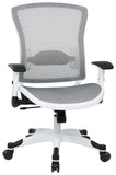 This white framed mesh office chair, by Office Star, offers a professional, modern look with a breathable mesh seat and back for all day comfort. The seat has a 360 degree swivel and provides a quick and easy pneumatic height adjustment to permit a comfortable position for both your knees and feet. The tilt and tilt tension adjustments allow you to recline in the chair as well as adjust the amount of weight needed to recline.